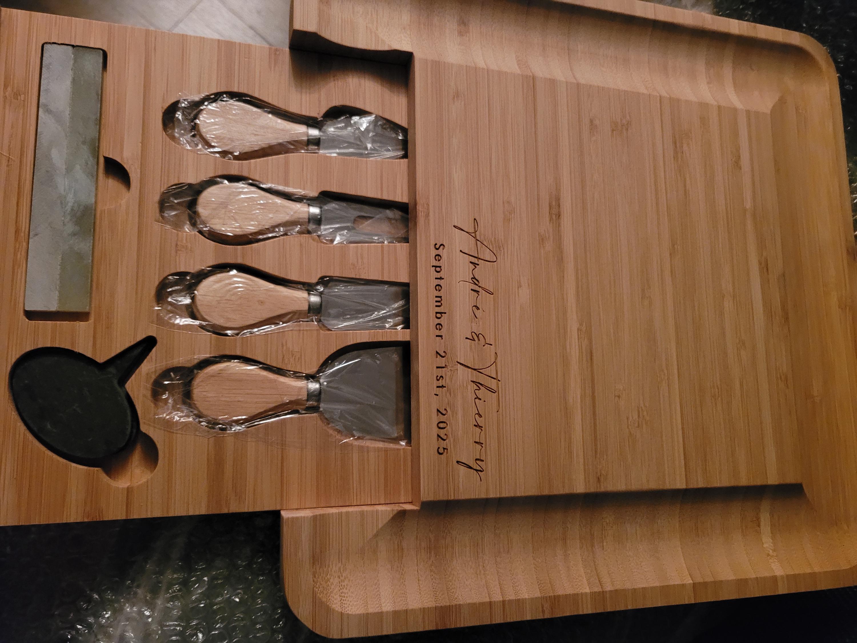 When ordering a personalized bamboo cheese board set, it's important to provide accurate personalization information in the Personalization section box to ensure that the final product is exactly what you want.