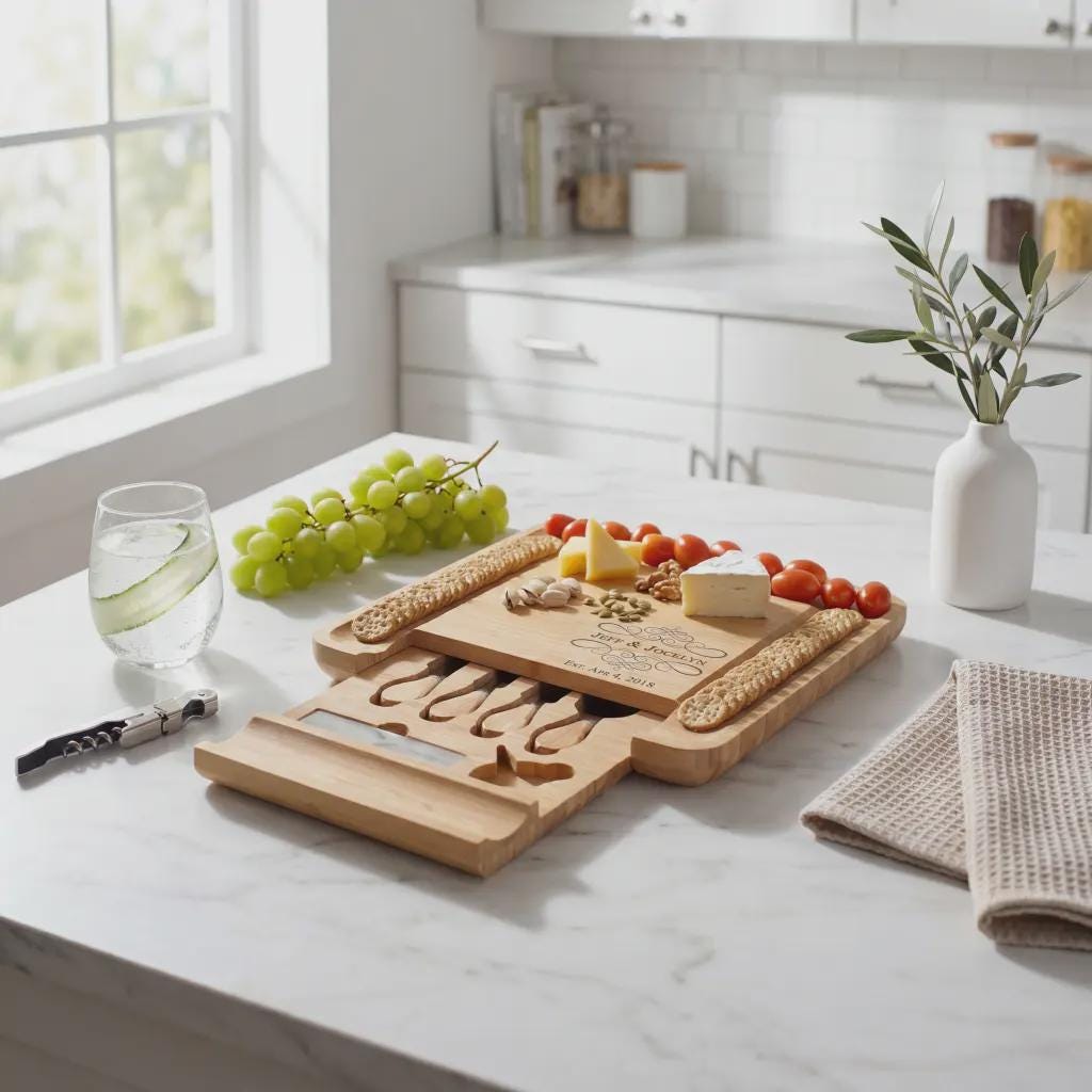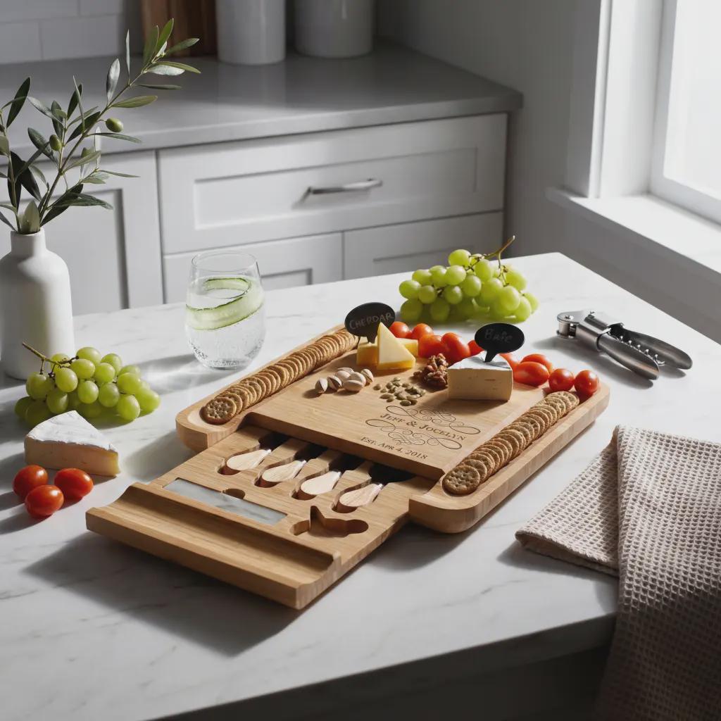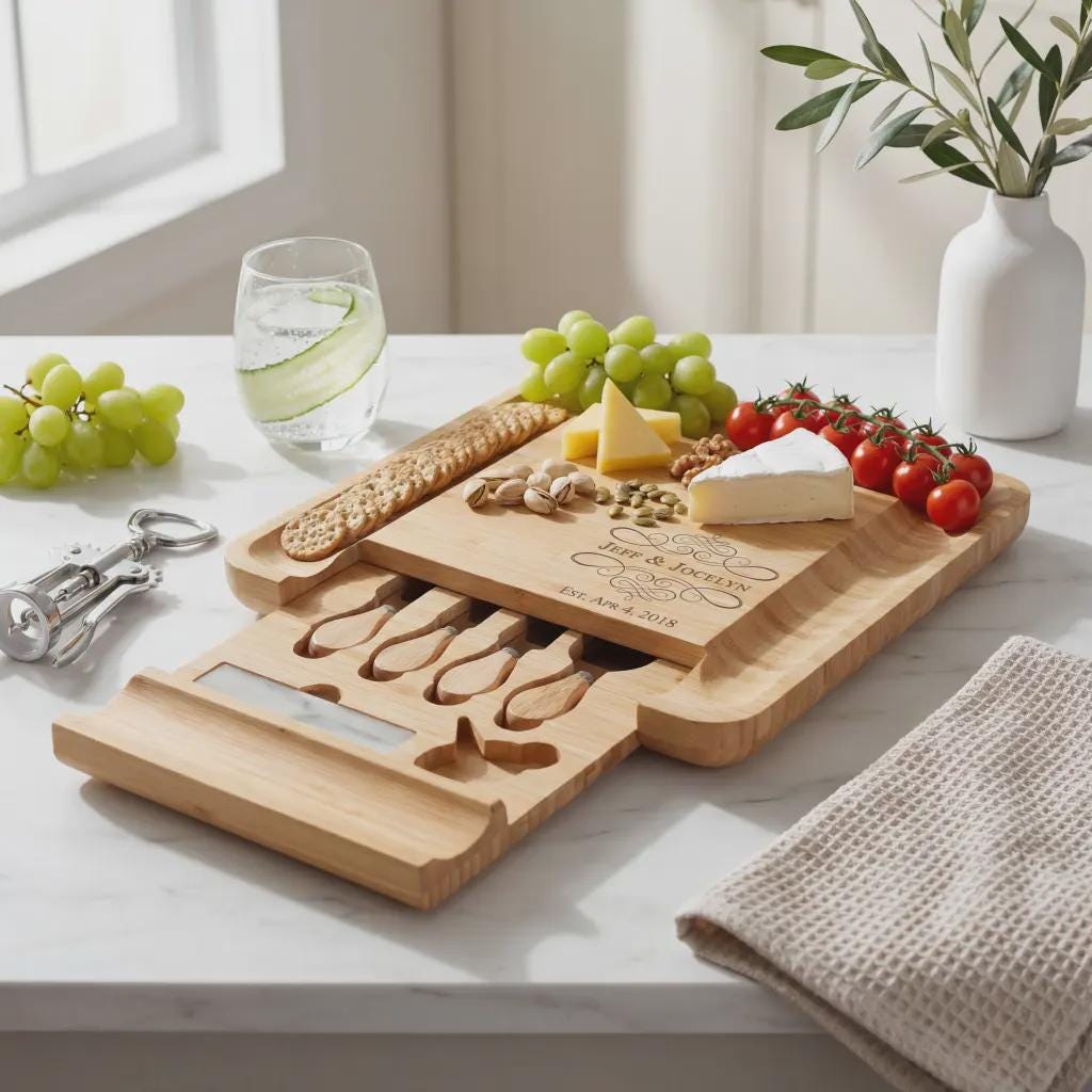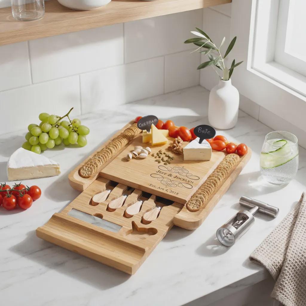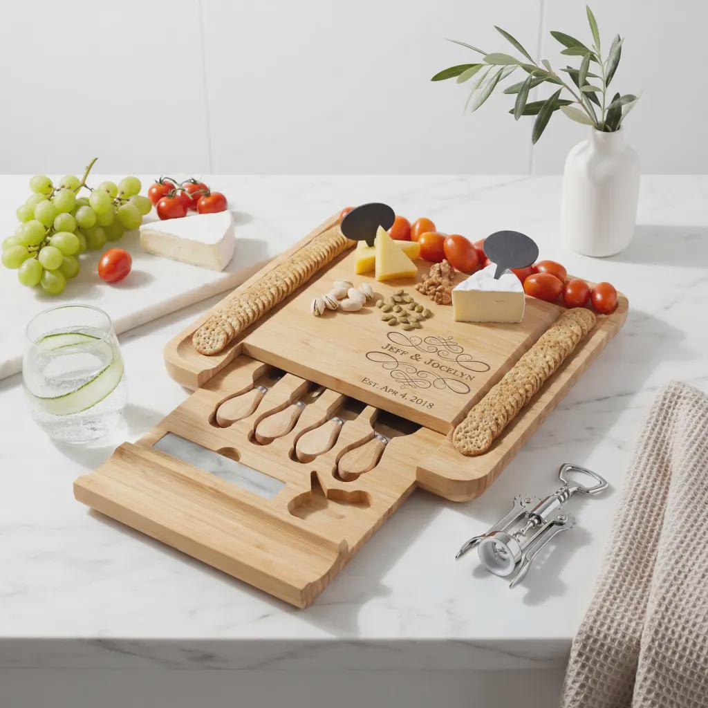 Personalized Bamboo Charcuterie Board - Engraved Cheese Serving Set with Hidden Tools