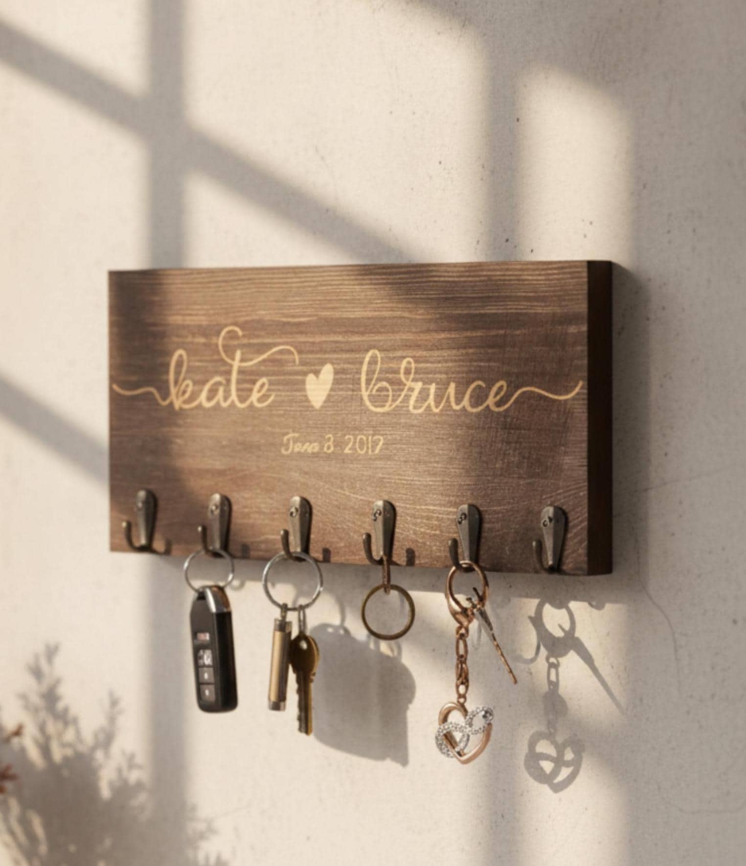 Personalized Key hanger, Custom Key hook, Engraved key holder for wall, Mask hanger, Housewarming gift, Gift for the couple