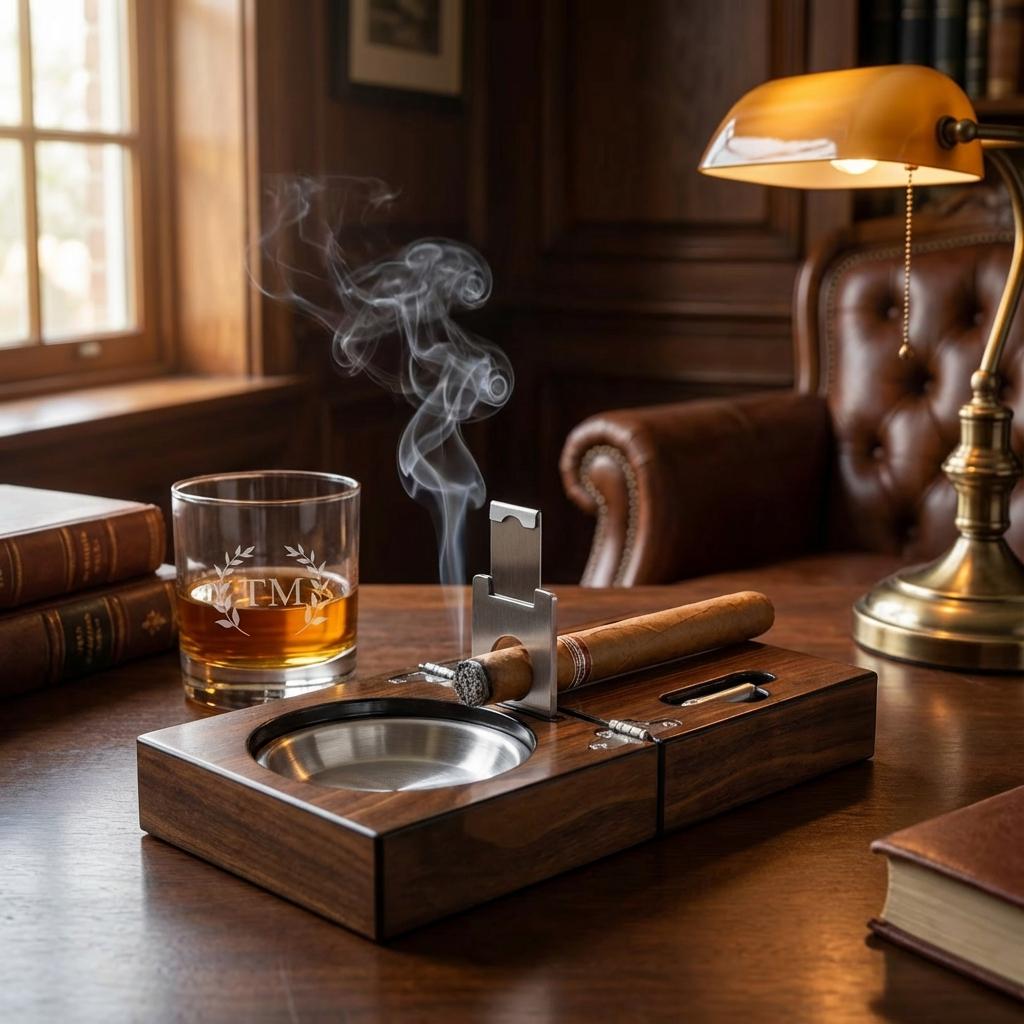 Personalized Cigar Ashtray, Custom Cigar Cutter, Ashtray Guillotine, Engraved Ashtray, Gift For Him, Christmas Gift, Cigar Lover Gift