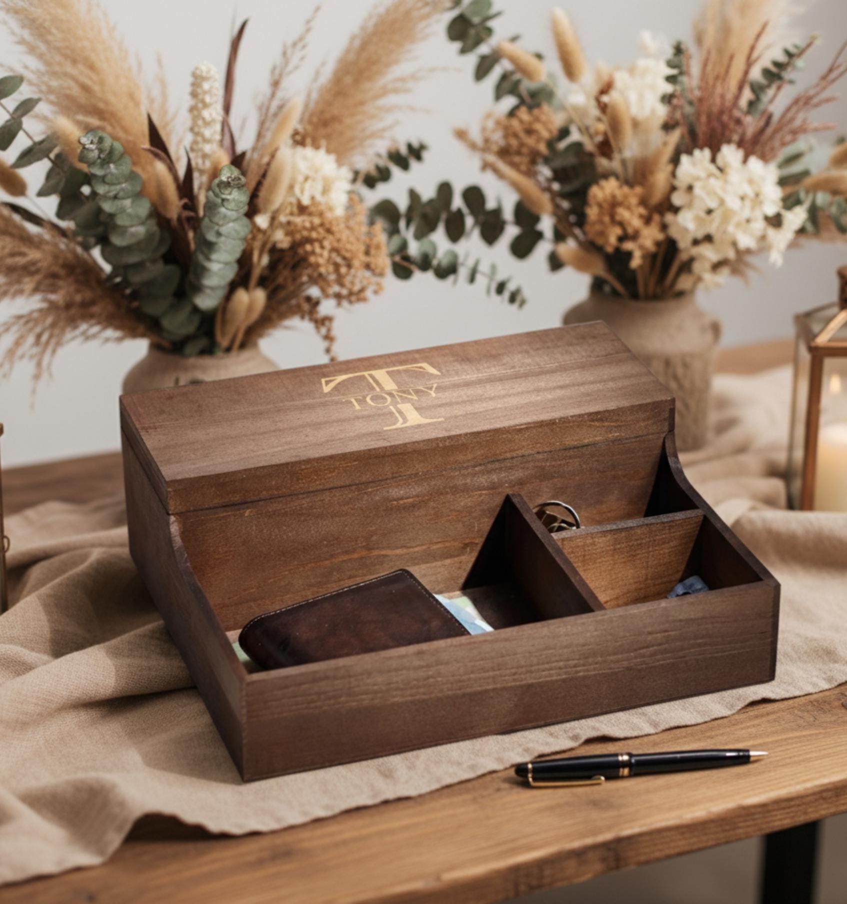 Perfection!!! Exactly what I needed. The box is lovely, plenty of space and the engraving is gorgeous. Box was shipped very quickly and well packed. Would definitely shop again. Perfect graduation present for my son!
