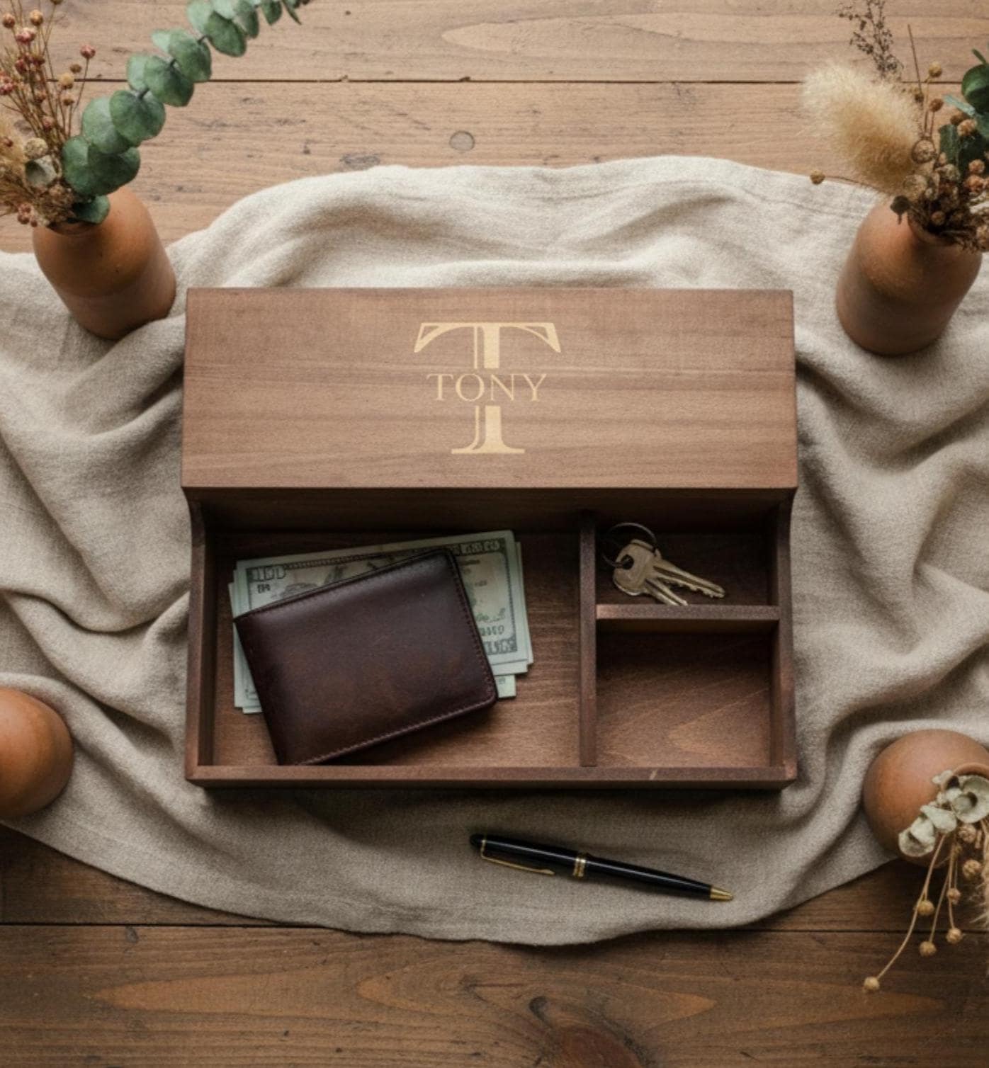 Personalized Wood Watch Case, Custom Watch Organizer, Wooden Storage Box, Valet Watch Box, Father's Day Gift, Gift For Him