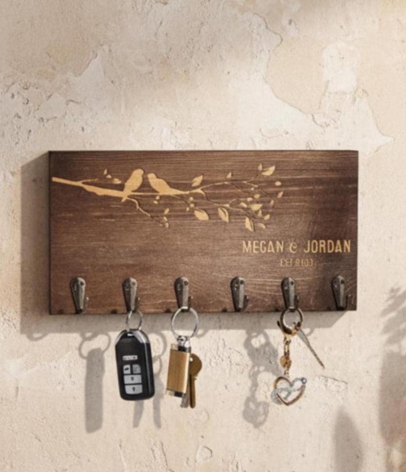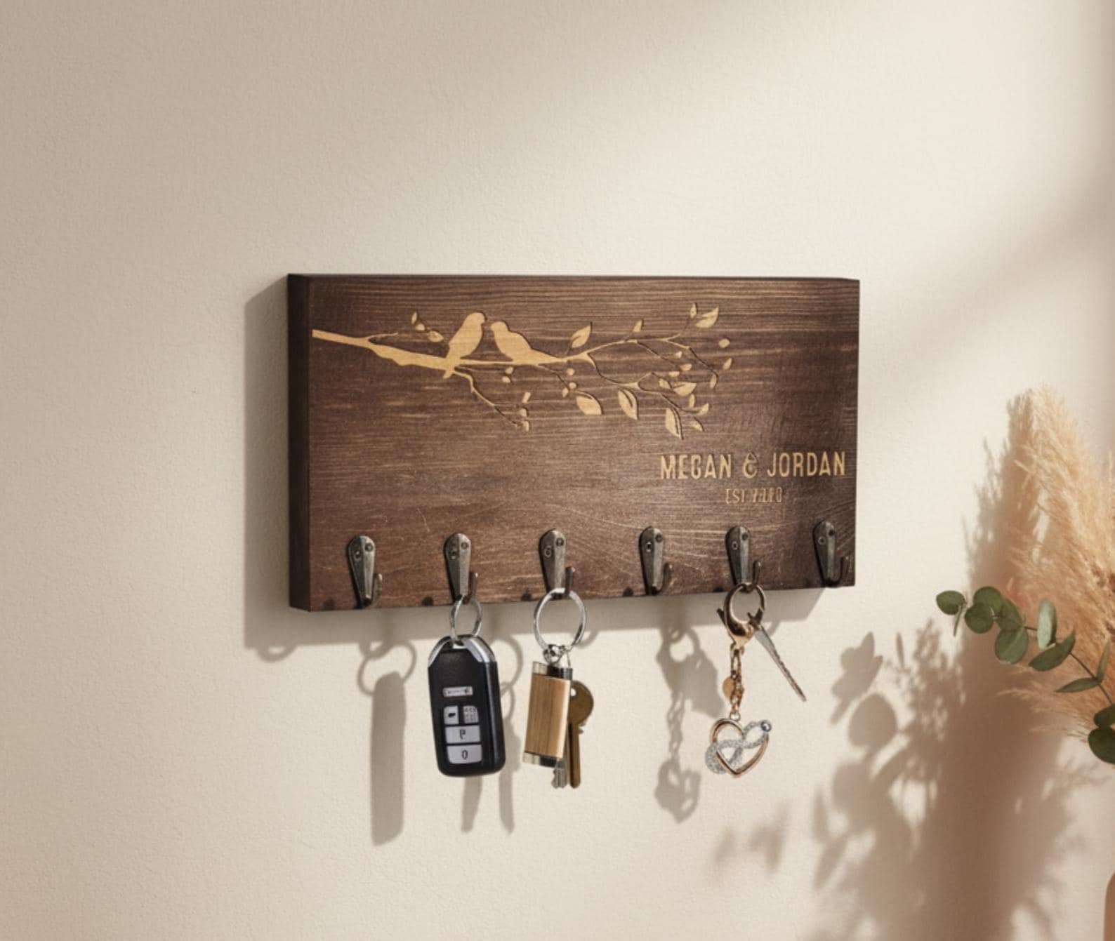 Personalized Key hanger, Custom Key hook, Engraved key holder for wall, Mask hanger, Housewarming gift, Gift for the couple