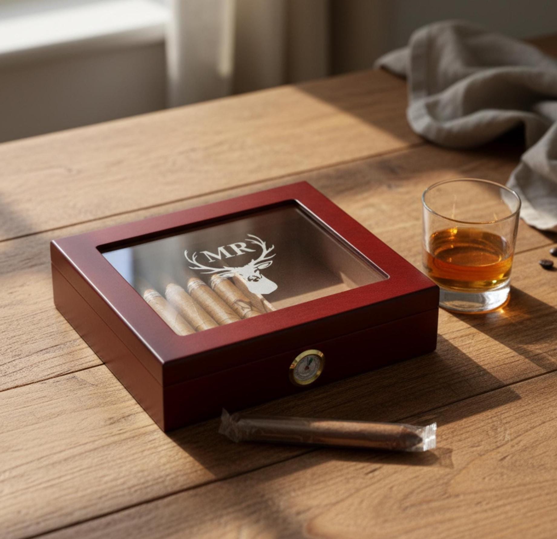 Personalized Cigar Humidor, Engraved Glass Top Cigar Box, Custom Humidor Gift Set, Monogramed Cigar Humidor, Cigar Holder Box, Cigar Kit