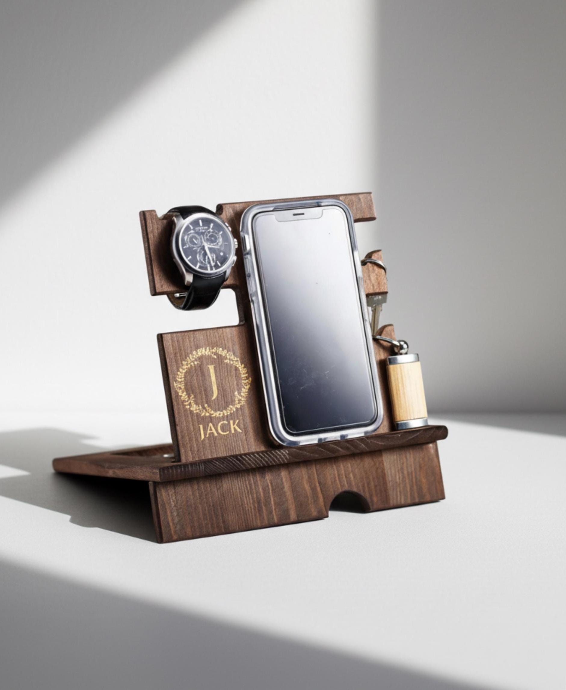 Personalize wood phone stand, Custom watch stand, Personalize wood organizer, Wood Docking Station, Gift for him, Organizer station