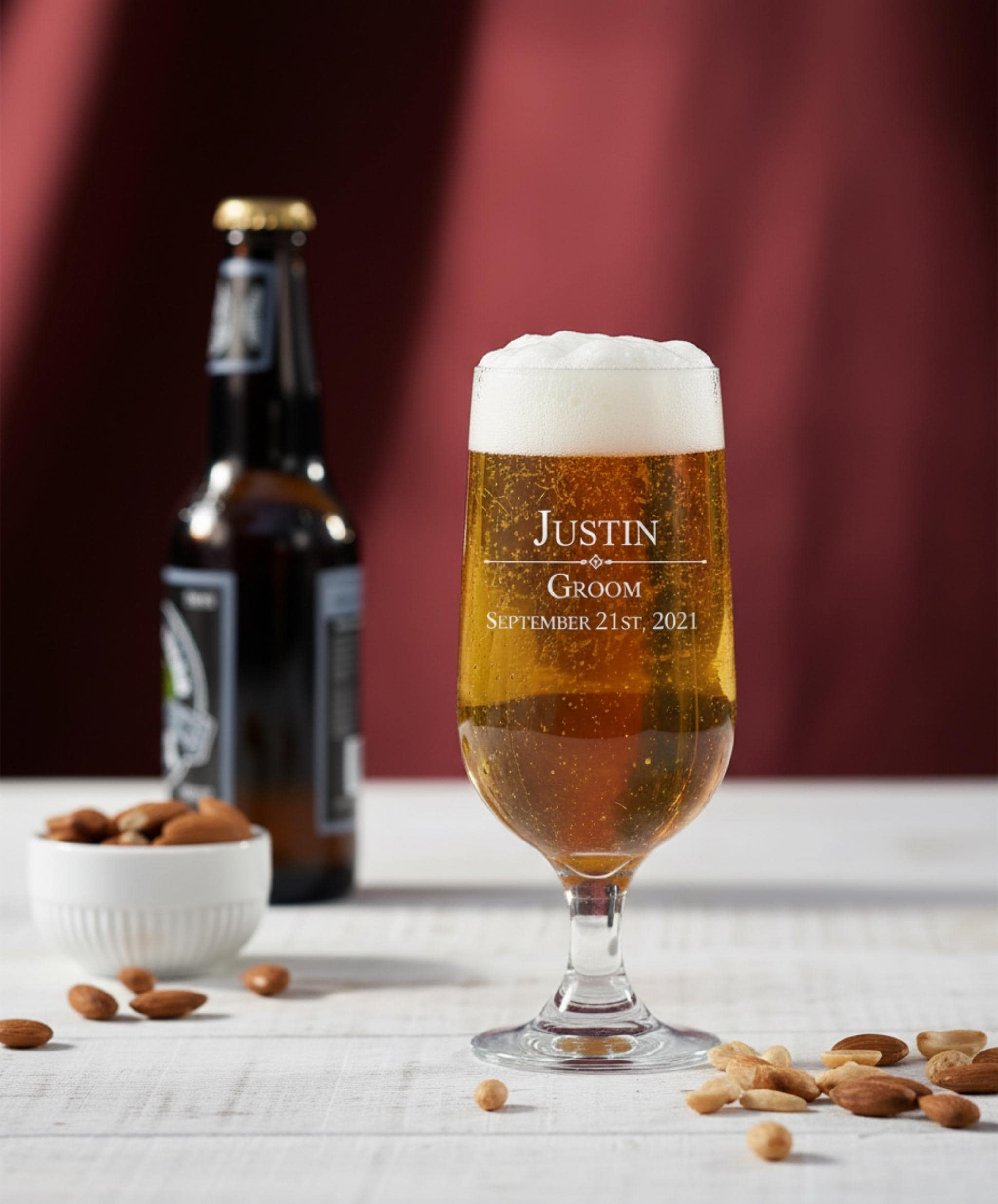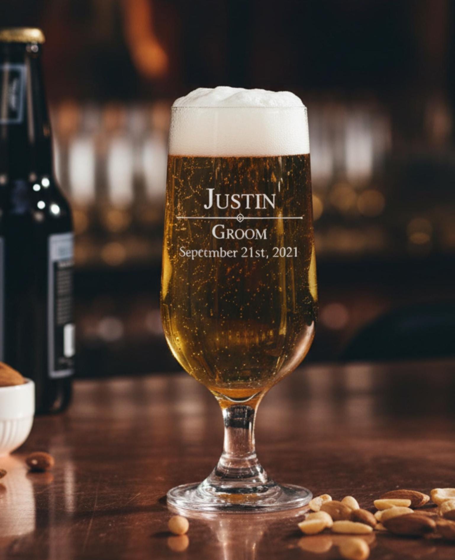 Personalized Glasses, Custom Engraved Beer Glass, Wedding Gift for Groomsmen, Monogrammed Beer Glass, Groomsmen gifts, Pilsner Beer glass