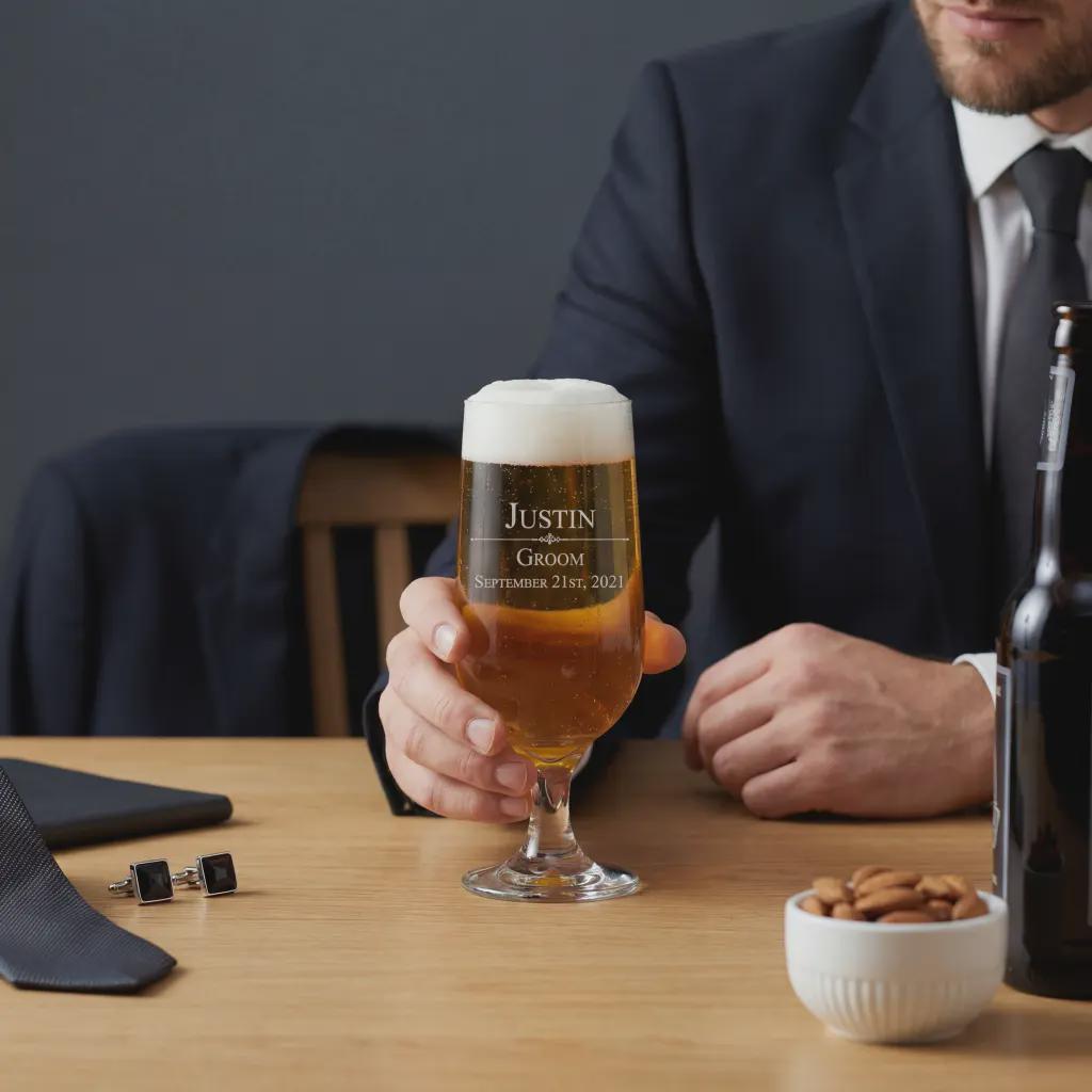Celebrate the biggest milestones of your life with the elegance of our Personalized Wedding Pilsner Glass.
