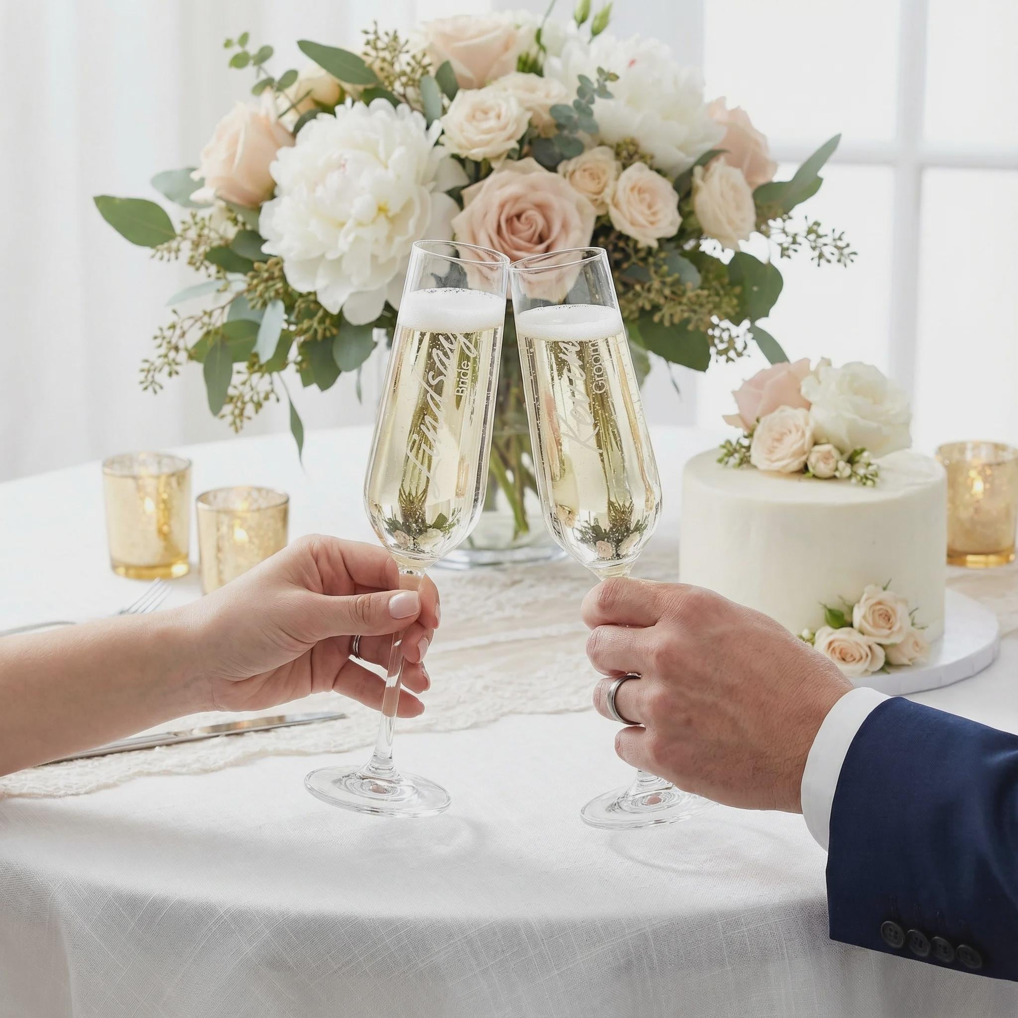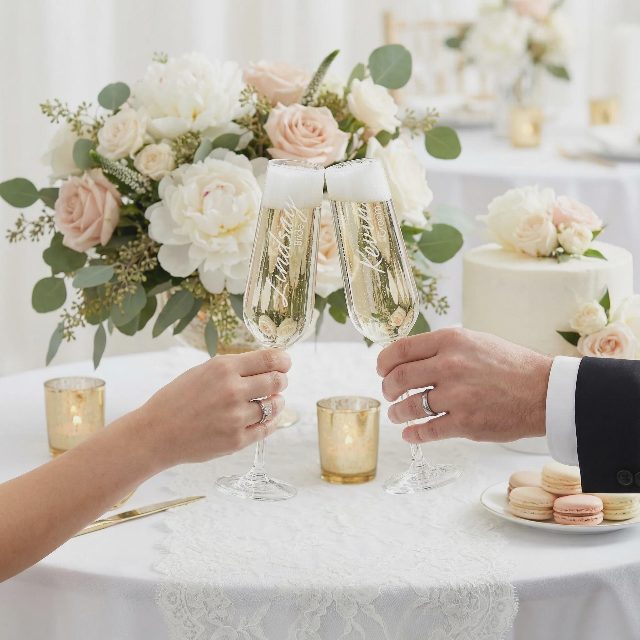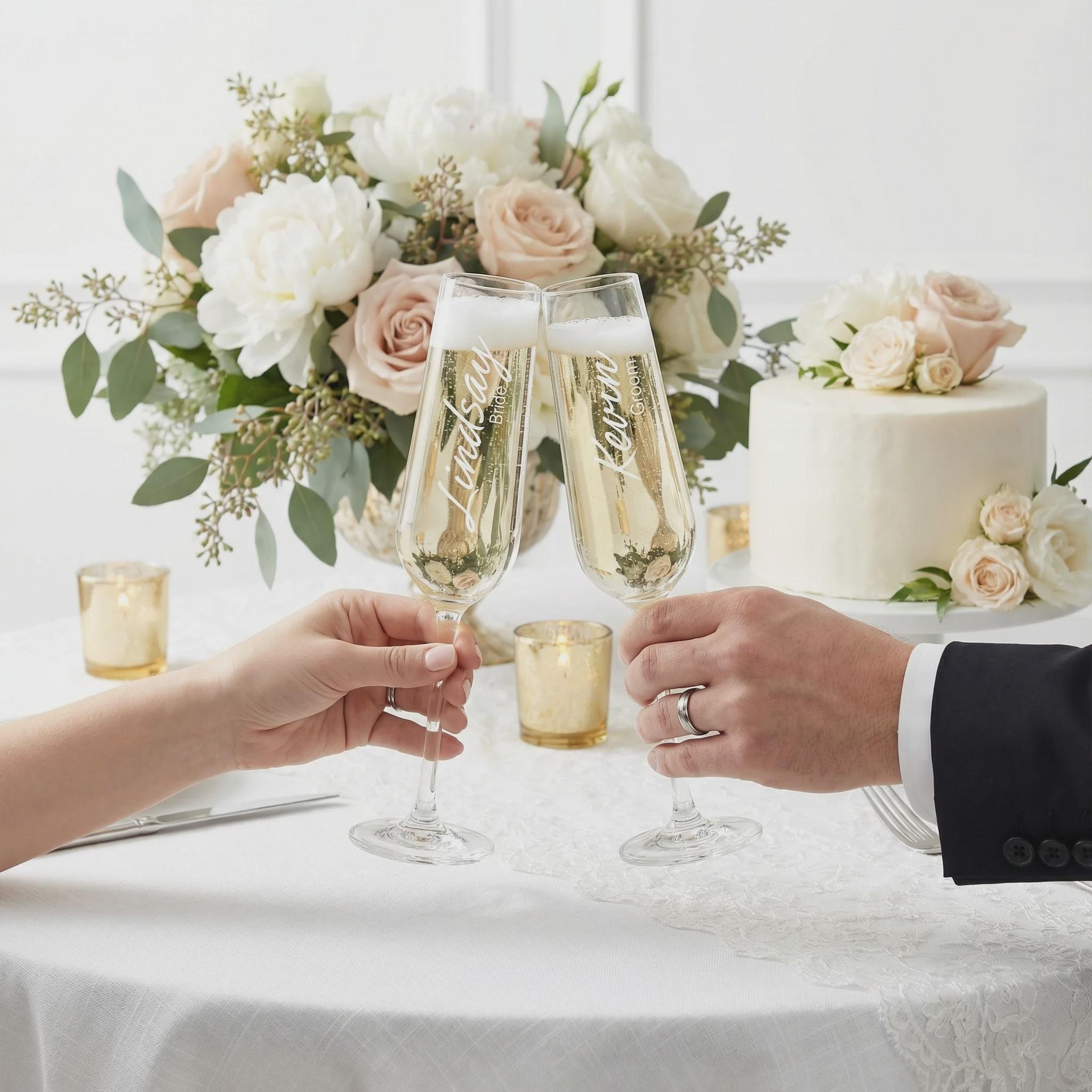 Drinking Champagne involves special and personal rituals, why don't you make it extra special using our personalized Champagne glasses, each glass has a sleek and elegant design that provides the ultimate drinking experience.