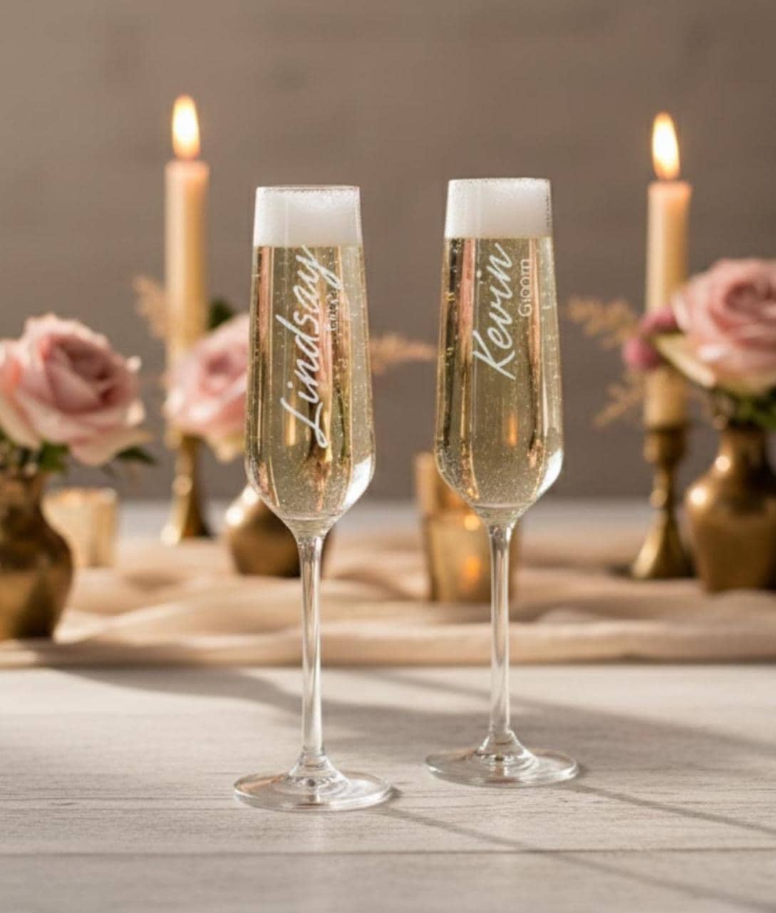 Drinking Champagne involves special and personal rituals, why don't you make it extra special using our personalized Champagne glasses, each glass has a sleek and elegant design that provides the ultimate drinking experience.