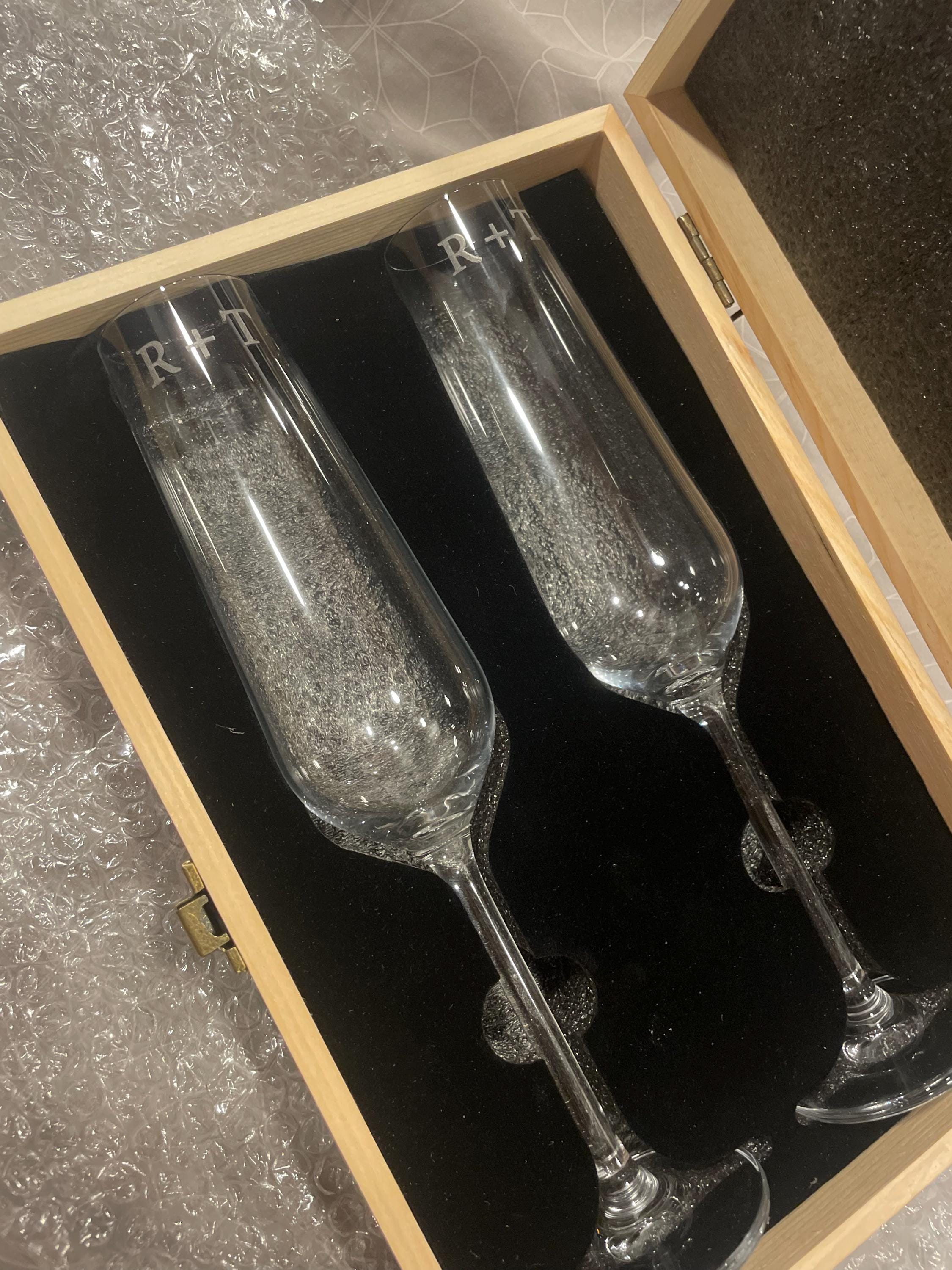 Our engraved champagne glasses are the ideal gift.