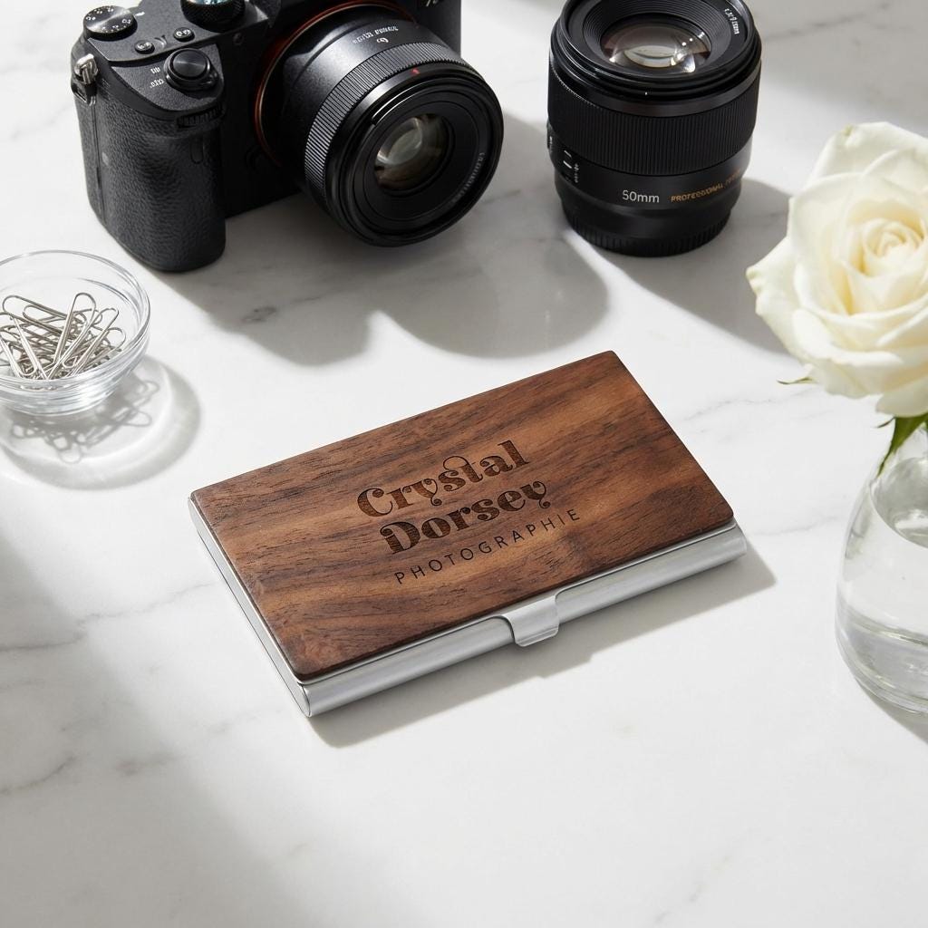 Personalized Wood Business Card Holder, Custom Engraved Maple or Walnut Case, Executive Gift