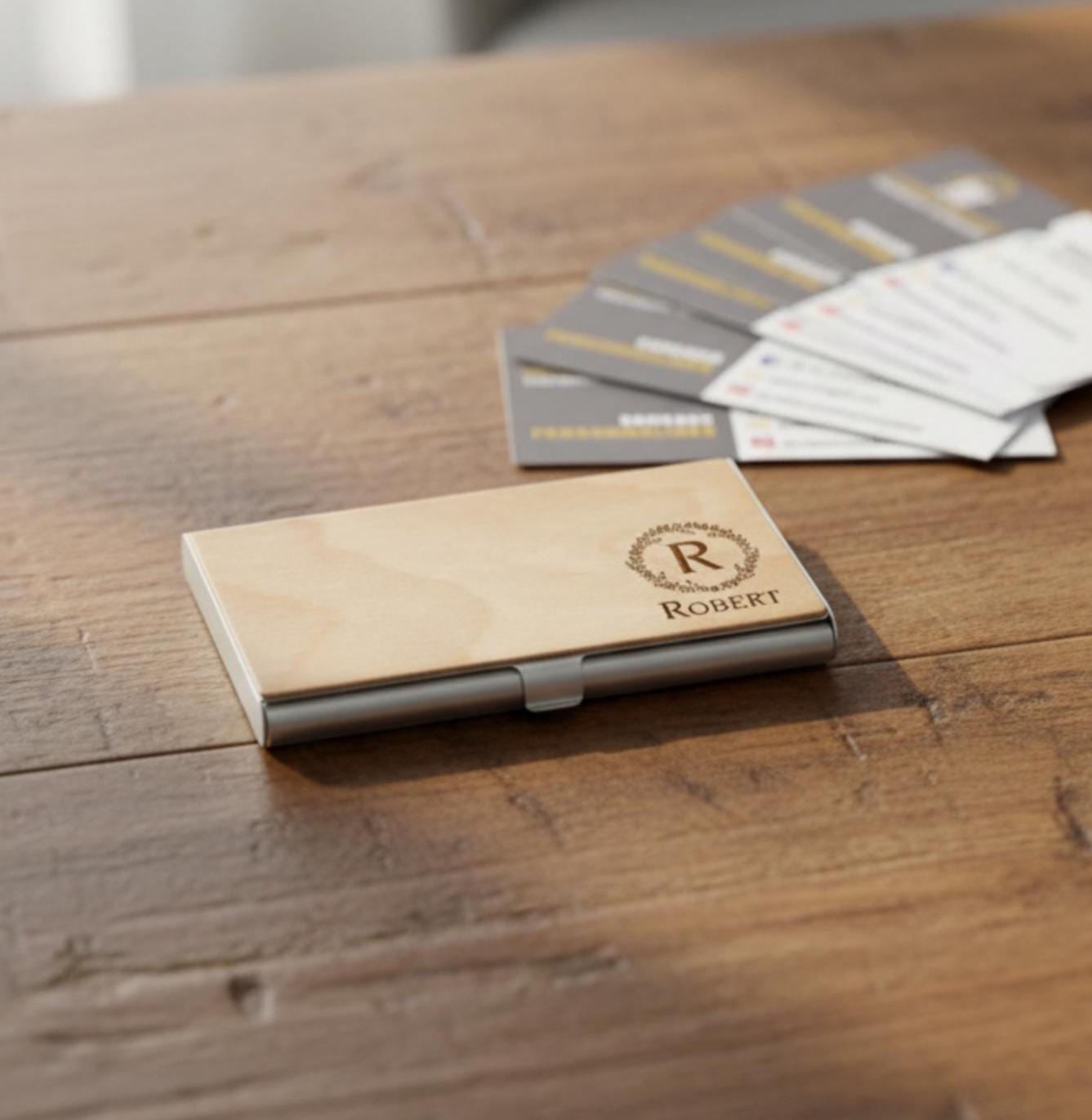 Personalized Business Card Holder, Custom Wooden Business Card Holder, Engraved Business Card Case, Office Gift, Desk Accessories